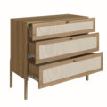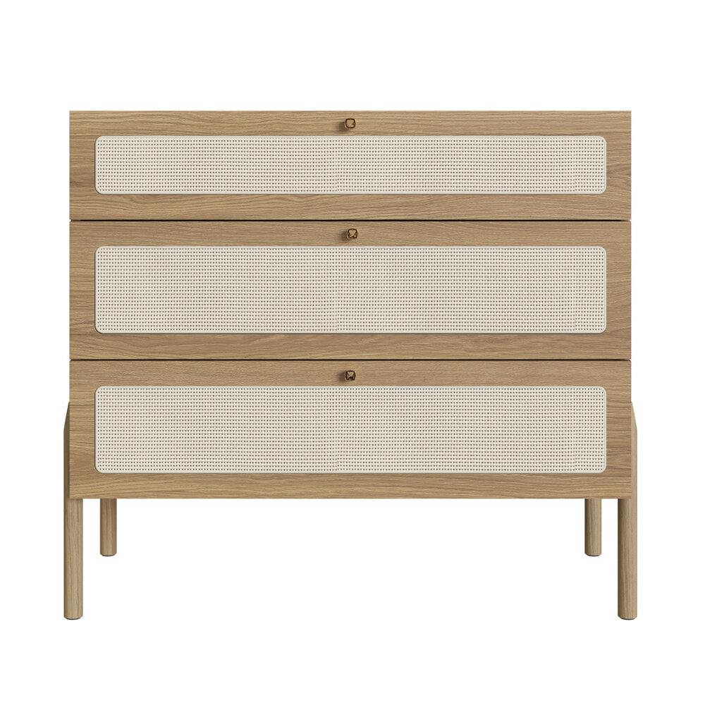 This three-drawer dresser is a fresh addition to your bedroom. Clean design lines combined with woven synthetic rattan drawer fronts give a light, textural look with fresh organic allure. Accented by beautiful drawer pulls and solid wood legs, this dresser embodies casual elegance. The natural and organic palette blends in seamlessly with any color scheme or style, becoming a perfect addition to your house.