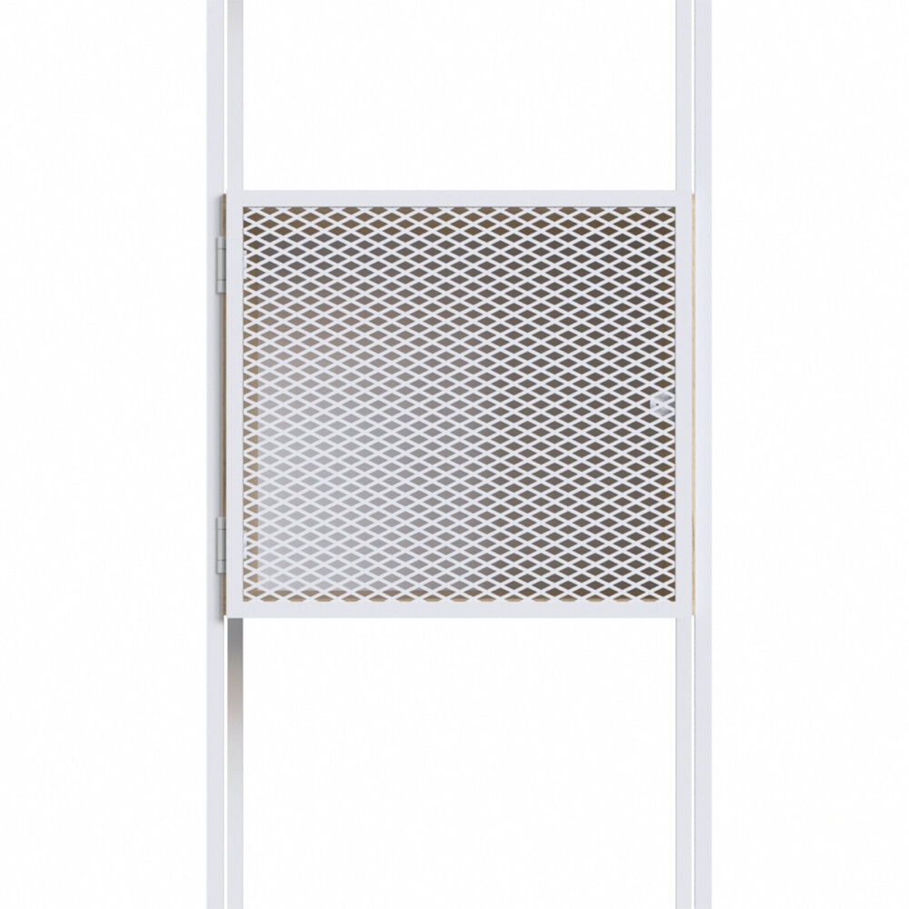 Bookcase produced in 15mm MDP, back of the furniture and bottom of the drawer are 3mm. Metal structure of carbon steel with epoxy finish, paint with high resistance and durability. Doors in carbon steel expanded sheet with epoxy finish. Opening by cava system. Doors have metal hinges with anti-corrosion protection and magnetic closure. Niche with doors has mounting mobility.