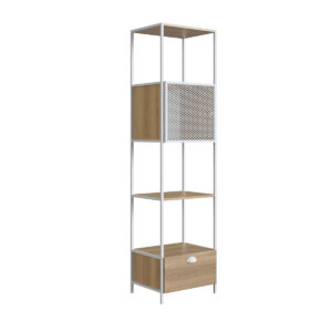 $190.99Add style, while saving space, to your living room or dining room with this versatile bookcase that fits perfectly in any corner. Its steel structure, and manufactured wood modules, give it a modern look. Its design offers versatility and functionality, combining open storage shelves and a drawer module to keep a few things out of sight yet still at hand. -