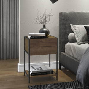 $92.99This industrial-style nightstand brings a modernity to your bedroom, living room, or home office, since this versatile piece also works as an end table or even as a printer table. It’s made of black metal and manufactured warm color wood, offering a distinctive contrast. It has two drawers that expertly stores all of your bedside essentials out of sight while an open bottom shelf creates the perfect place for books and other decors. Plus, the wide top is ideal for a lamp and favorite decorative items. -
